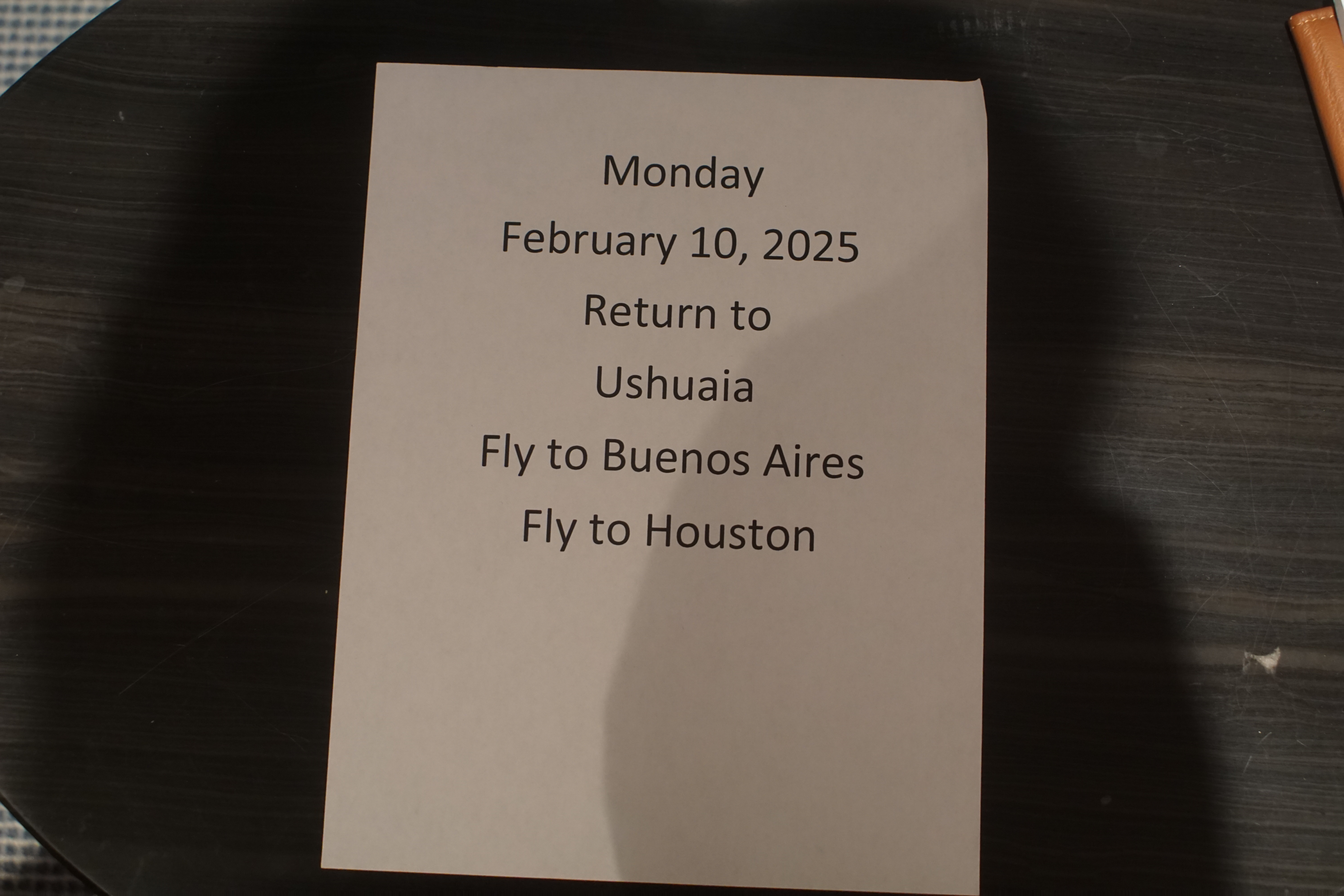 Fly to Buenos Aires then UA 818 to Houston, USA