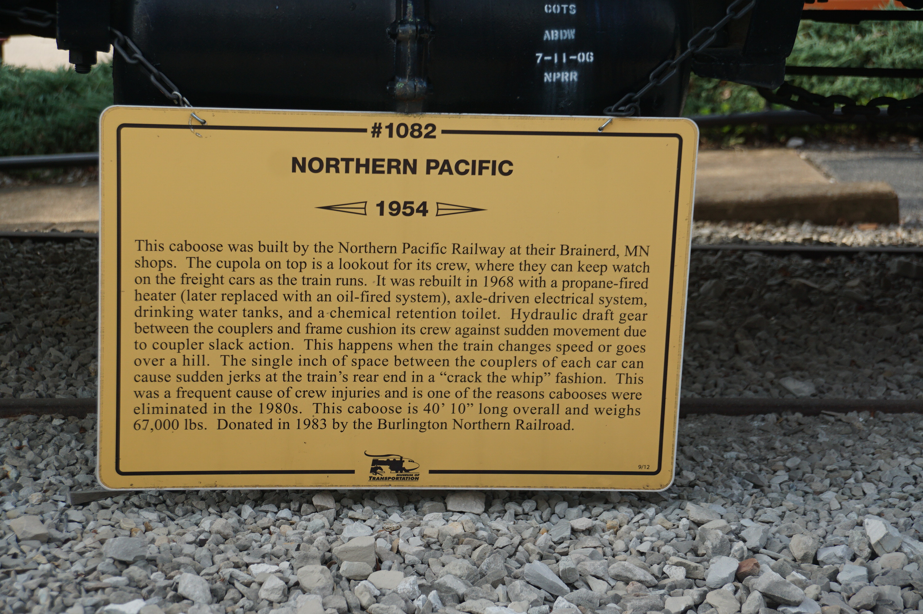 Donated in 1983 by the Burlington Northern Railroad