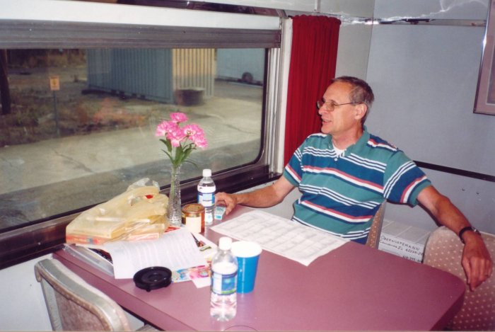 Amtrak required us to send the cars to Chicago to have them put on the Texas Eagle, which was a change from past years. In past years we were able to put them in the train at St. Louis, and the change meant a more rushed boarding process, but thanks to Neva Sprung and Tony Marchiando the passengers were in place and ready to board when the Eagle rolled into St. Louis. We departed St. Louis about an hour late as the passengers enjoyed a welcome aboard party on Chouteau Club before retiring to their accommodations on Cimarron River.