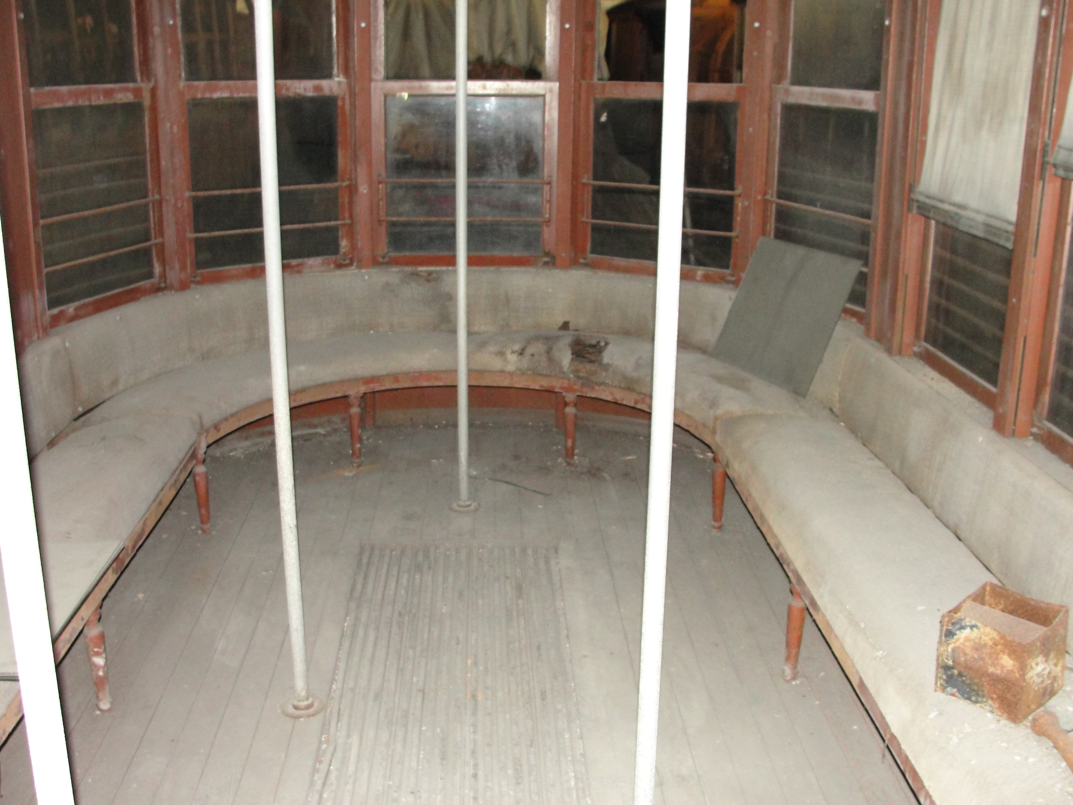 steel frame and body, canvas over wood roof and round ends
