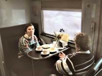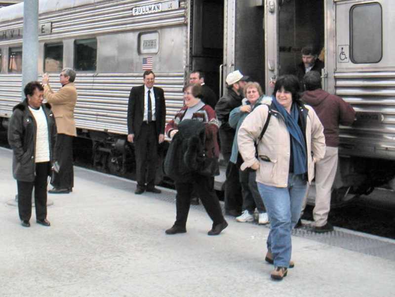 The Chapter ran a pair of day excursions from St. Louis to Kansas City and back just after Valentine's Day. The original intent was to get the Chapter's recently restored coach Silver Larch out on the road for a test, but Silver Larch's incomplete freeze protection system forced us to substitute the coach Mohave. We also brought along the Royal Street to provide an exclusive lounge service. Saturday was cold and overcast while Sunday had us departing in a snow storm, enjoying bright sunshine in Kansas City and returning to the snowstorm in St. Louis. During our 2 hour layover in Kansas City, we enjoyed strolling among the shops and restaurants in the magnificently restored Kansas City Union Station.